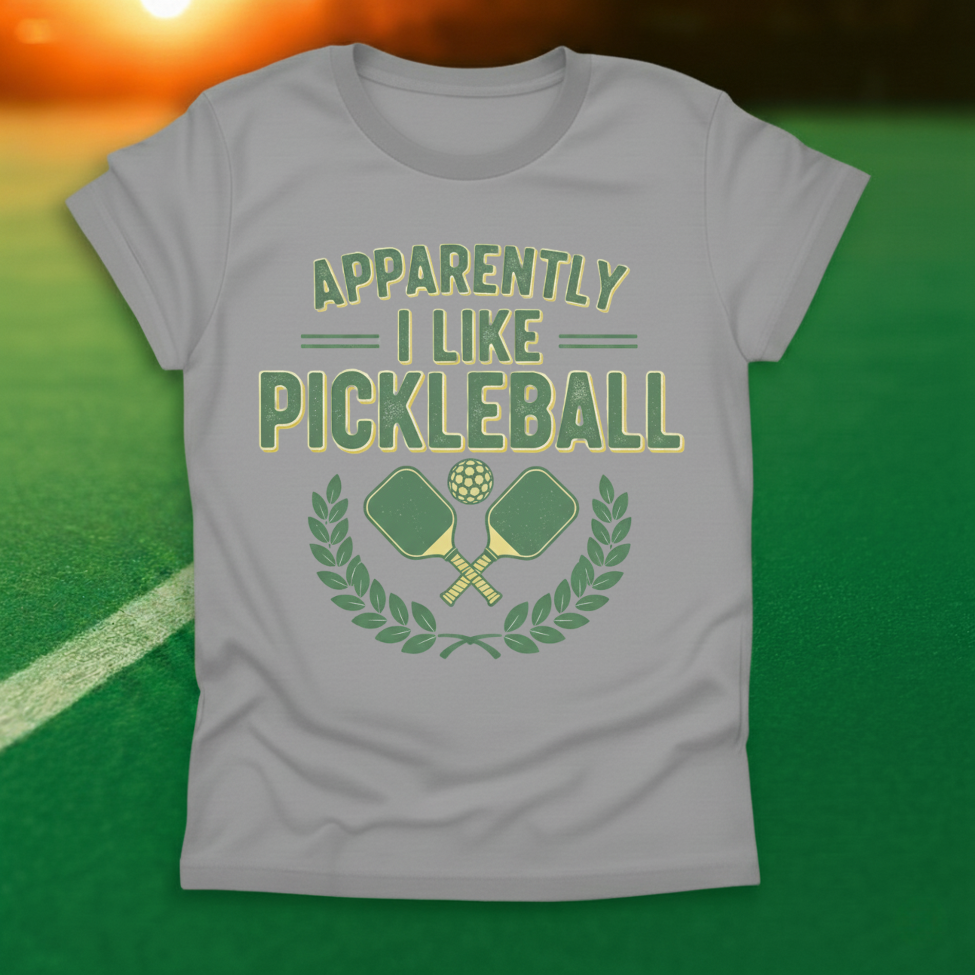 Apparently I Like Pickleball—a casual, tongue-in-cheek way to admit your latest obsession. It’s playful, relatable, and perfectly captures how quickly the sport takes over your free time (and your wardrobe).