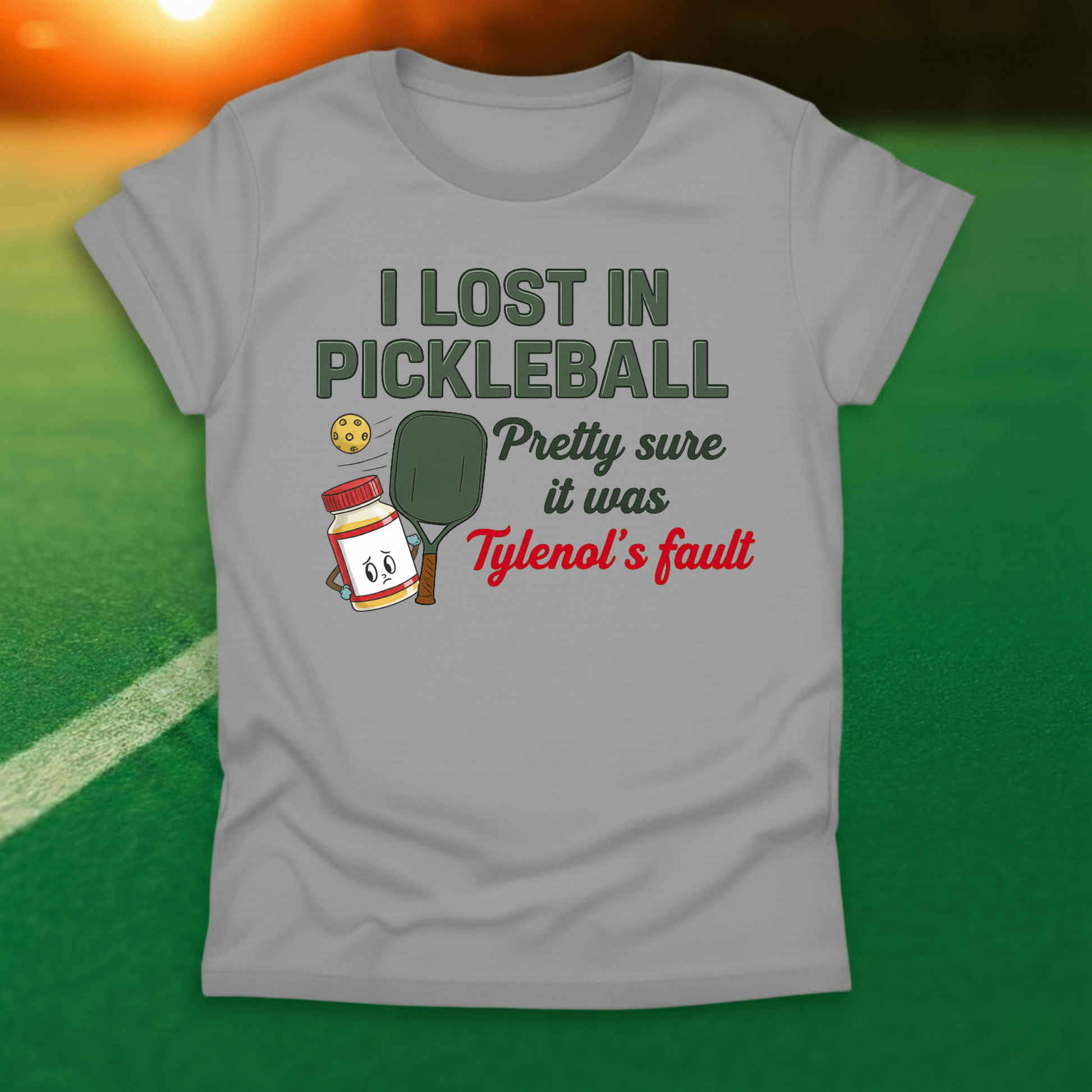 I Lost in Pickleball, It Was Tylenol’s Fault—a lighthearted, tongue-in-cheek excuse that puts the blame anywhere but your game. It’s playful, funny, and perfect for showing you can laugh at yourself after a tough match.